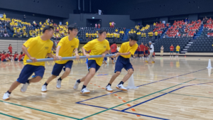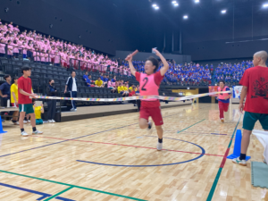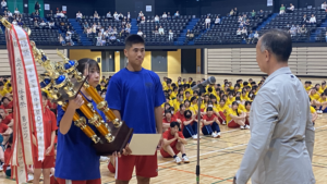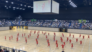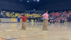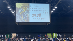 本日、福岡市総合体育館(照葉積水ハウスアリーナ)にて「令和7年度体育祭」を開催しました。テーマは「跳躍」、スローガンは「挑戦と感動」です。昨年度に引き続き、校外の施設を借用し、屋内で実施しました。天候に左右されず、熱中症等の心配もなく、快適な環境の中、全校生徒が4つのブロックに分かれて、各競技で熱戦が繰り広げられました。生徒会や3年生のブロックリーダー、実行委員が中心となり、生徒の主体性を生かした最高の体育祭になりました。ご来場の保護者の皆様、平日にも関わらず、観覧席から温かいご声援をいただき、ありがとうございました。全校生徒の皆さん、お疲れ様でした。