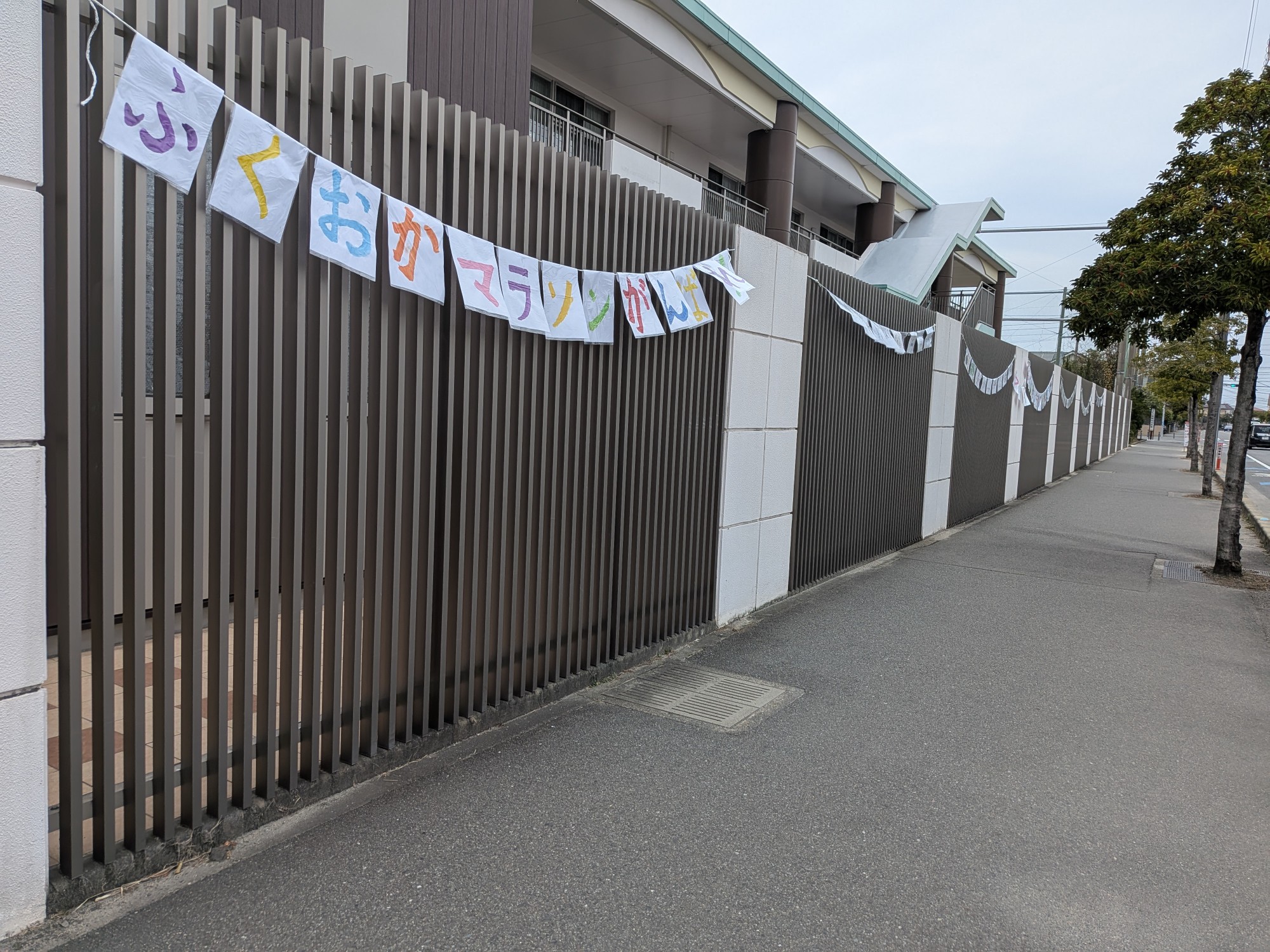 今年は、第Ⅰ園第Ⅱ園の年長組が応援のメッセージを描いたり、描いた絵を柵につけています。